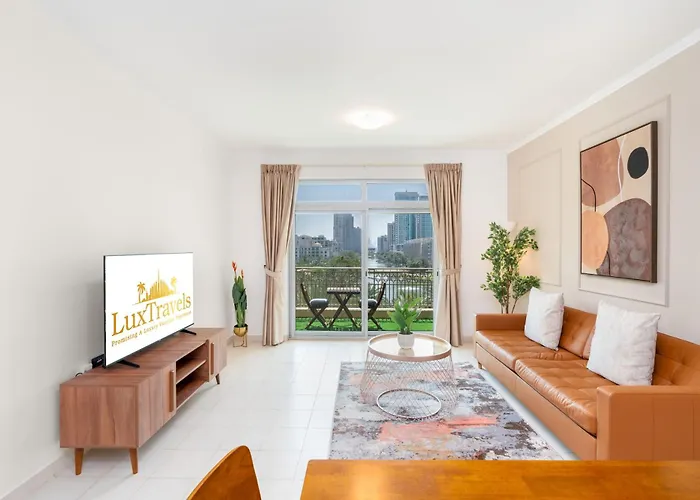 The spacious 2-bedroom Lux Bnb I Una Tower I Lakes View Apartment Dubai provides swift access to various city landmarks, such as Emaar Business Park, located nearly a 5-minute walk away. At a distance of 2.6 km from Dubai Media City Amphitheatre Event Venue, this 120 m^2 apartment includes a swimming pool as well as a hot tub.